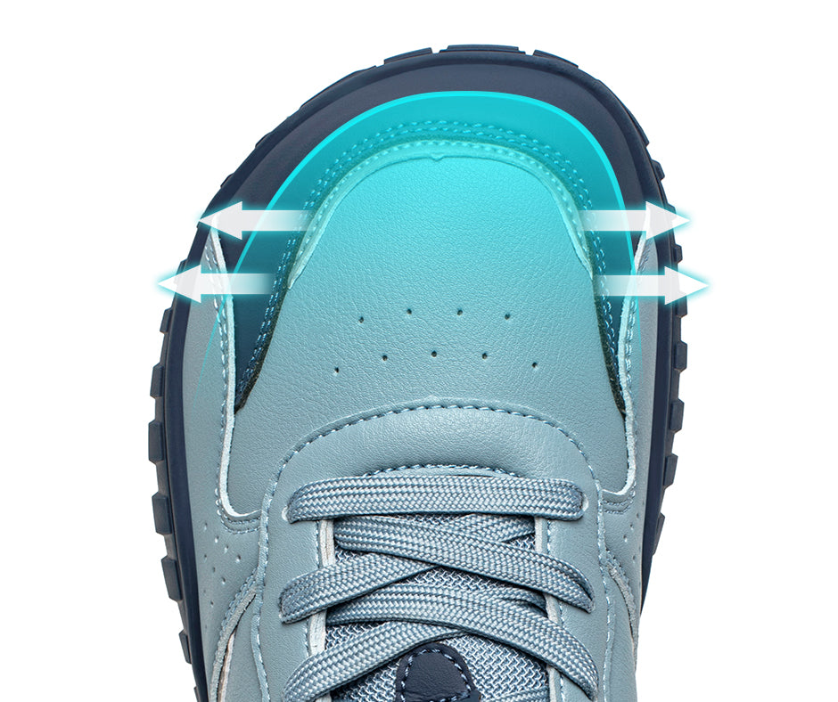 Les chaussures conventionnelles sont souvent trop serrées à l'avant, ce qui peut comprimer les orteils et provoquer des inconforts. Nos chaussures avec une zone large pour les orteils offrent suffisamment d'espace pour que vos pieds puissent s'étendre librement, réduisant ainsi les frottements et la pression, tout en prévenant les douleurs et les déformations.