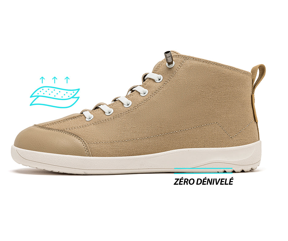 Le concept de conception des chaussures barefoot se concentre toujours sur le zéro dénivelé. Au lieu de semelles lourdes, vos pieds sont en contact direct avec le sol pour ressentir une sensation naturelle de pieds nus.