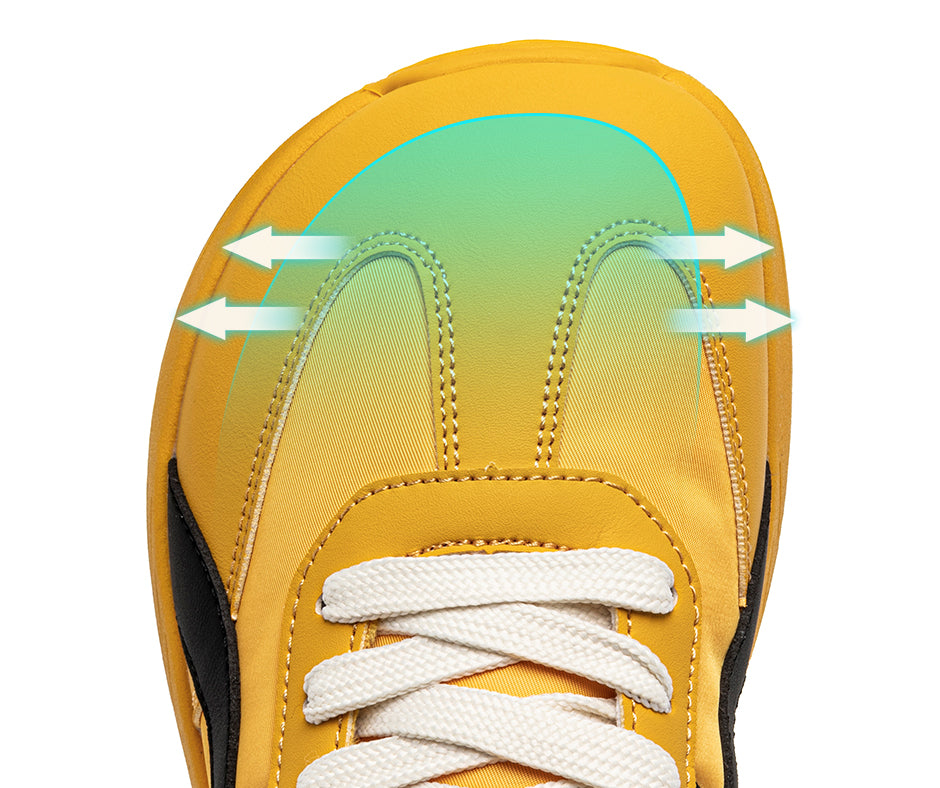 Les chaussures conventionnelles sont souvent trop serrées à l'avant, ce qui peut comprimer les orteils et provoquer des inconforts. Nos chaussures avec une zone large pour les orteils offrent suffisamment d'espace pour que vos pieds puissent s'étendre librement, réduisant ainsi les frottements et la pression, tout en prévenant les douleurs et les déformations.